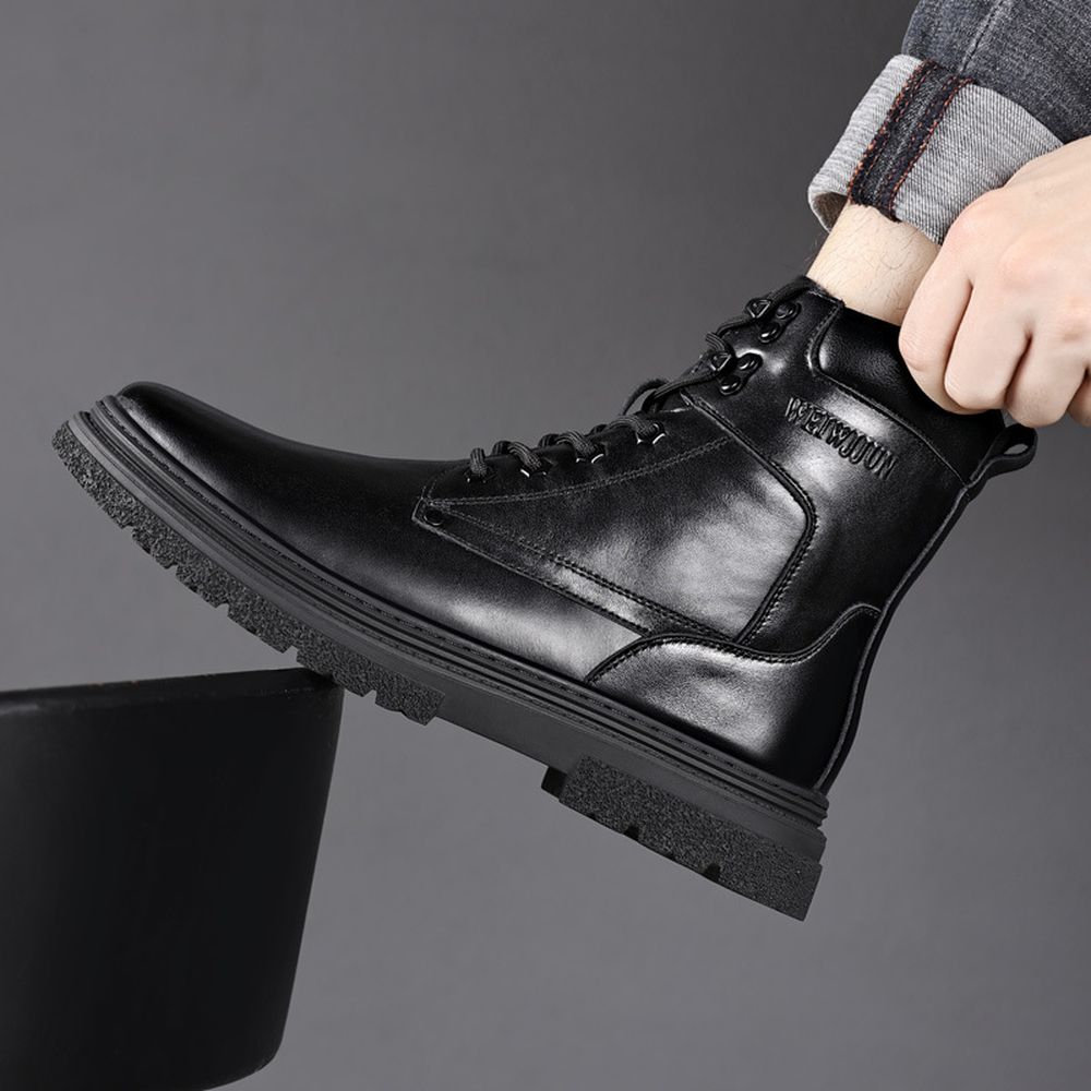 Men's Autumn New Fashion Casual Add Velvet Warm Leather High-Top Martin Boots