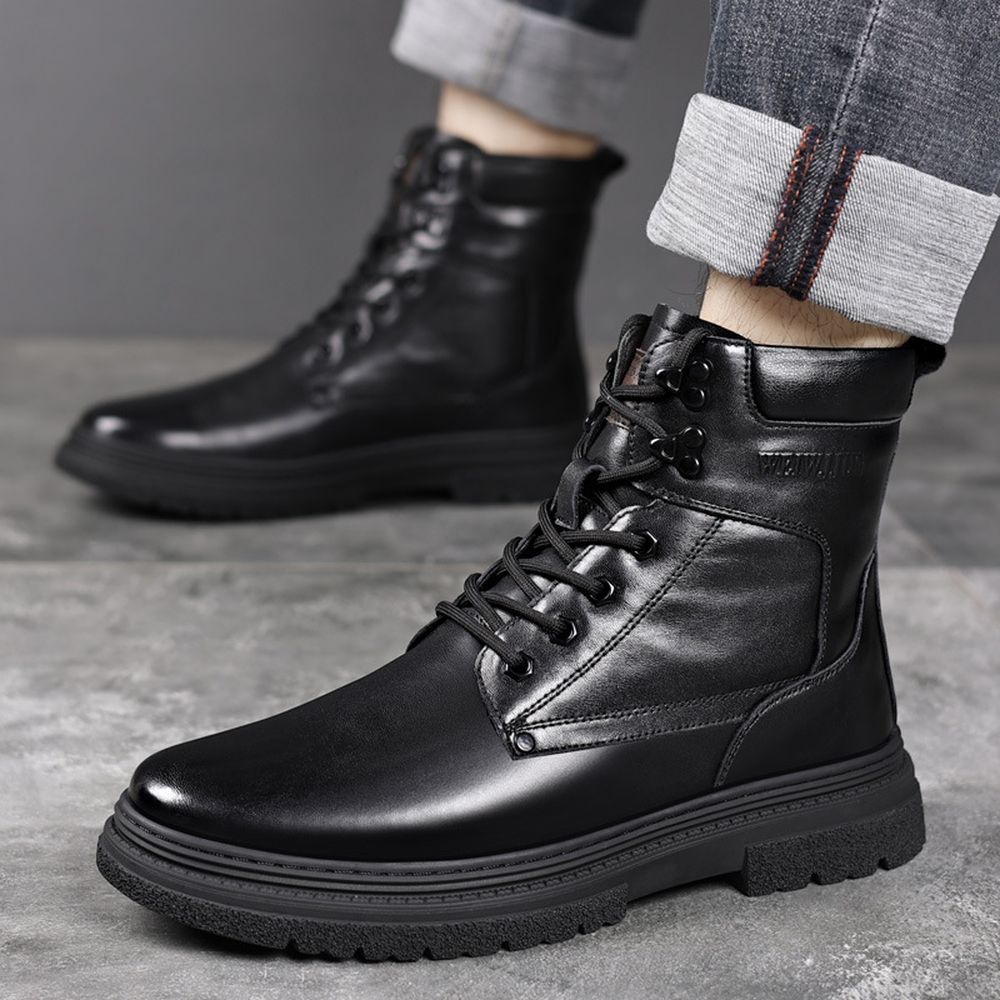 Men's Leather Martin Boots Winter Casual British Tooling Shoes