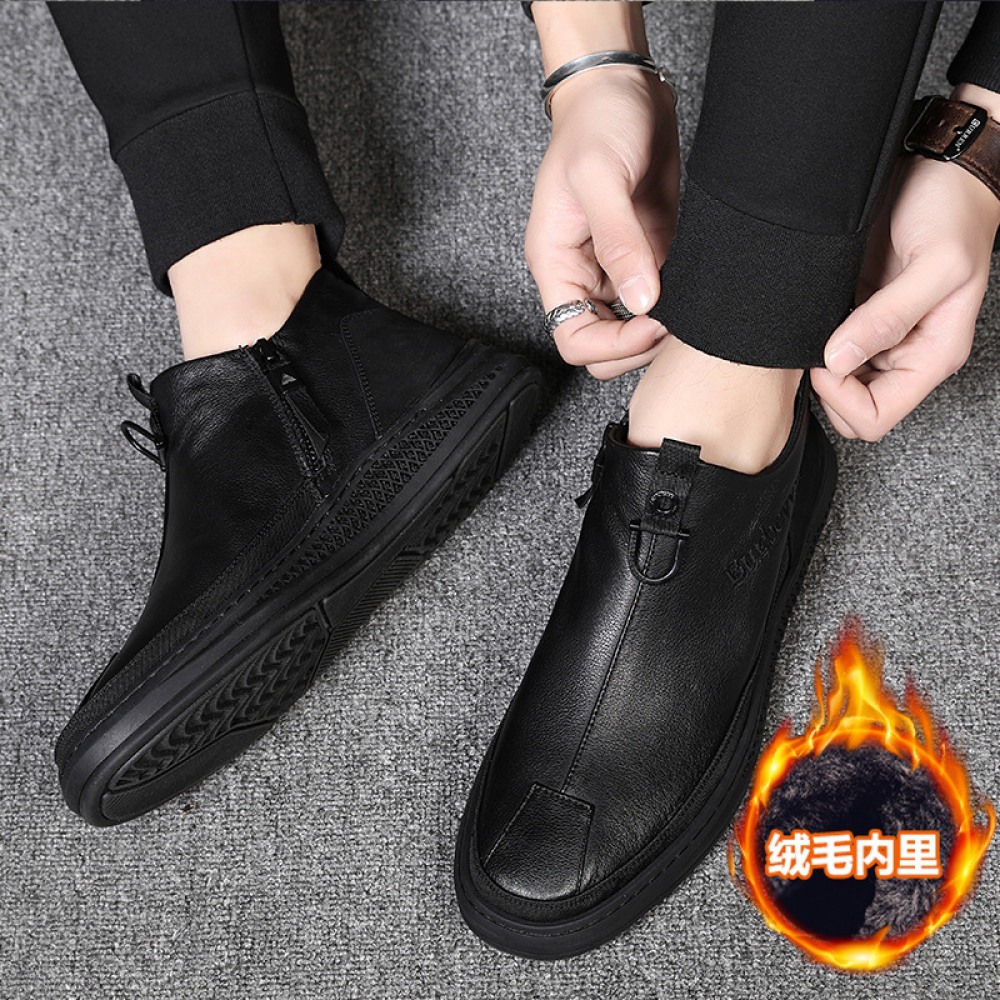 Autumn New Men's Casual Trendy Shoes Side Zipper British Leather Boots