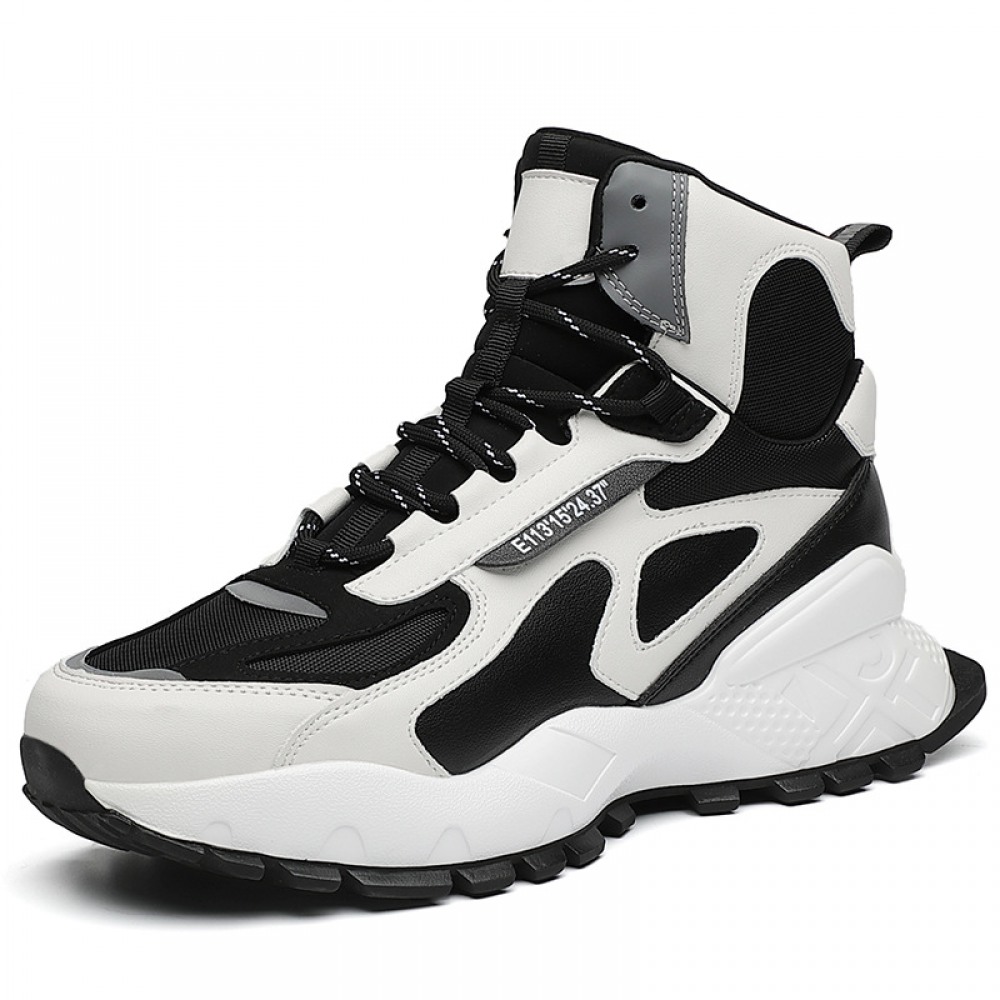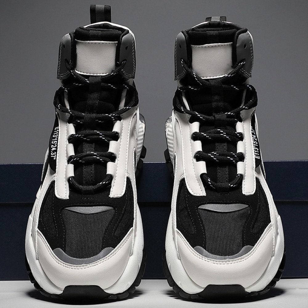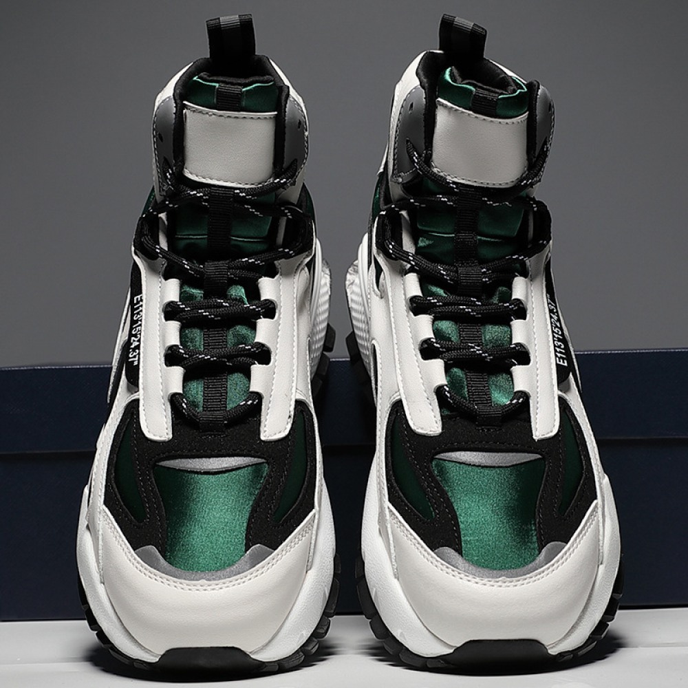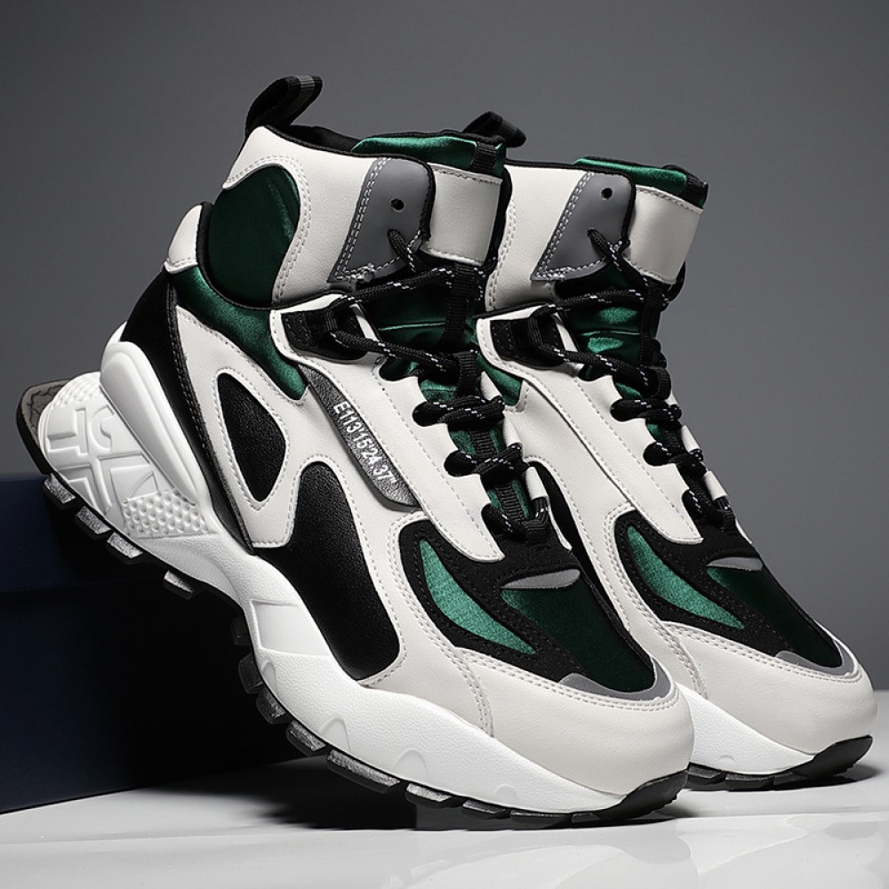 New Men's Casual High-Top Sneakers Stitching Trend Thick-Soled Inner Increase Warmth Running Shoes
